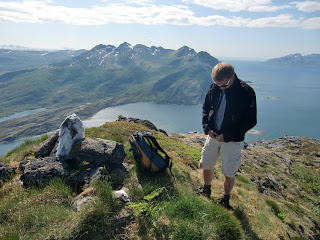 Nok en finværsdag her i Bodø. Jeg møtte Knut - også kalt SUPERMANN - på Festvåg. Knut hoppet på sykkelen i Skivika, mens jeg tar fram sykkelen først på Festvåg. Sykkel fra Misten til Sørvatnet. Knut jogger lett opp på Misttinden, mens jeg venter i et skar nedenfor. Etter kjentmannsråd går vi litt ned i nordsida før vi etter noe vegetert krafsing og artig klyving i toppartiet, står på dagens hovedmål, Laukstelltinden. Nordøstryggen ned igjen. Kjempetur med trivelig turfølge.
